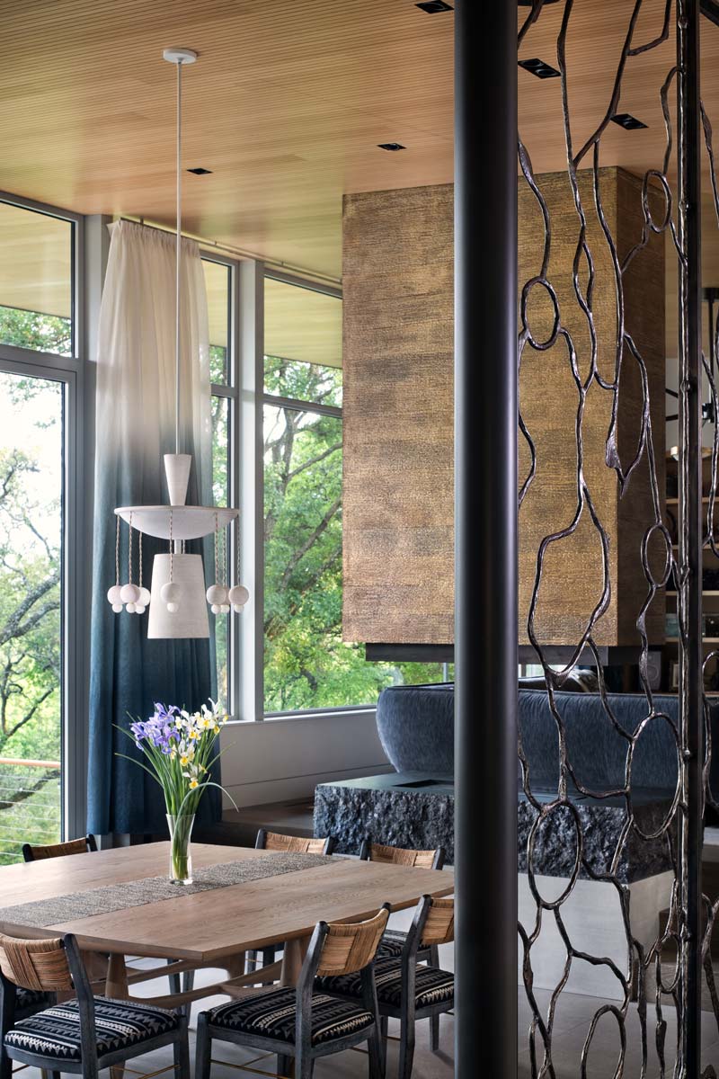 Miró Rivera Architects’ Rocky River Residence, from Texas-based Miguel Rivera, FAIA, redefines how architecture meets landscape and urban horizon. Conceived as a “reverse house,” its main living areas—living, dining, and kitchen—occupy the upper level, offering expansive views of downtown Austin above native oaks. From the street it reads as a single-story home, thanks to a terraced grade that blends with nature.