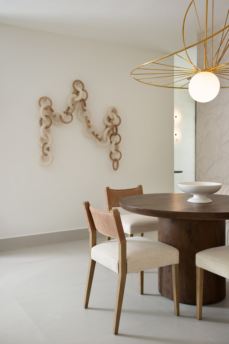 Para esta residencia en Guaynabo, Cecilia propuso un estilo neutro equilibrado con elementos y formas orgánicas, generando una atmósfera cálida y armoniosa. Sin duda, al entrar a la casa, desde el foyer hasta la sala formal y el comedor, se perciben espacios que se sienten serenos y, a la vez, llenos de vida, gracias a la interacción entre líneas limpias y detalles que evocan la naturaleza.