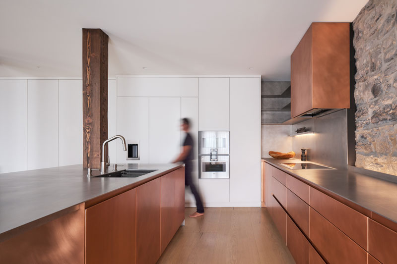 Montreal’s Suite 305 masterfully fuses history and modernity in the top two floors of a historic Old Port building. MU architecture preserves stone walls and wooden beams, restoring texture and warmth. The copper kitchen cabinets provide a bold contrast to mineral walls, turning cooking into an aesthetic act. A sculptural staircase links levels to a refined attic retreat. A living canvas where diverse objects harmonize, Suite 305 embodies design as an experiential manifesto.