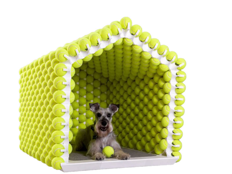 The Fetch House, de Callison RTKL, es un prototipo único de caseta para perros impresa en 3D y construida con más de 1,000 pelotas de tenis. Esta propuesta premiada en el concurso Bark + Build 2019 permite sacar las pelotas y jugar. No sé cuánto durará con mis perras… pero, sin duda, es demasiado cool.