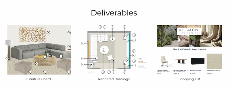 Recibir un plan de diseño completo — incluyendo distribuciones, mobiliario y una lista de compras para hacerlo realidad a su propio ritmo.