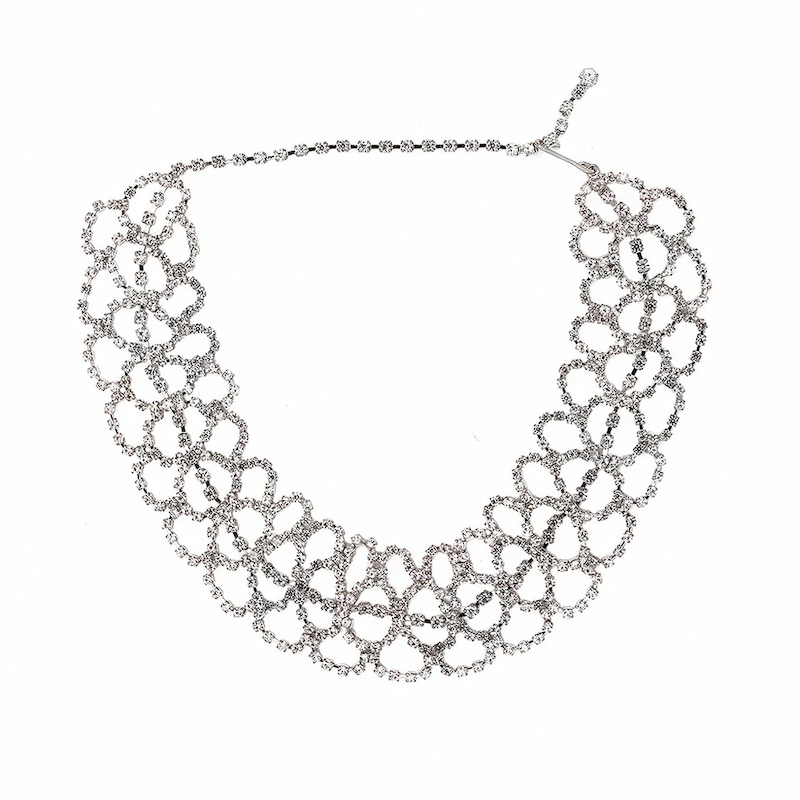 Choker en encaje y cristales plateados. Accesorios: un statement piece que eleva al instante cualquier escote básico.