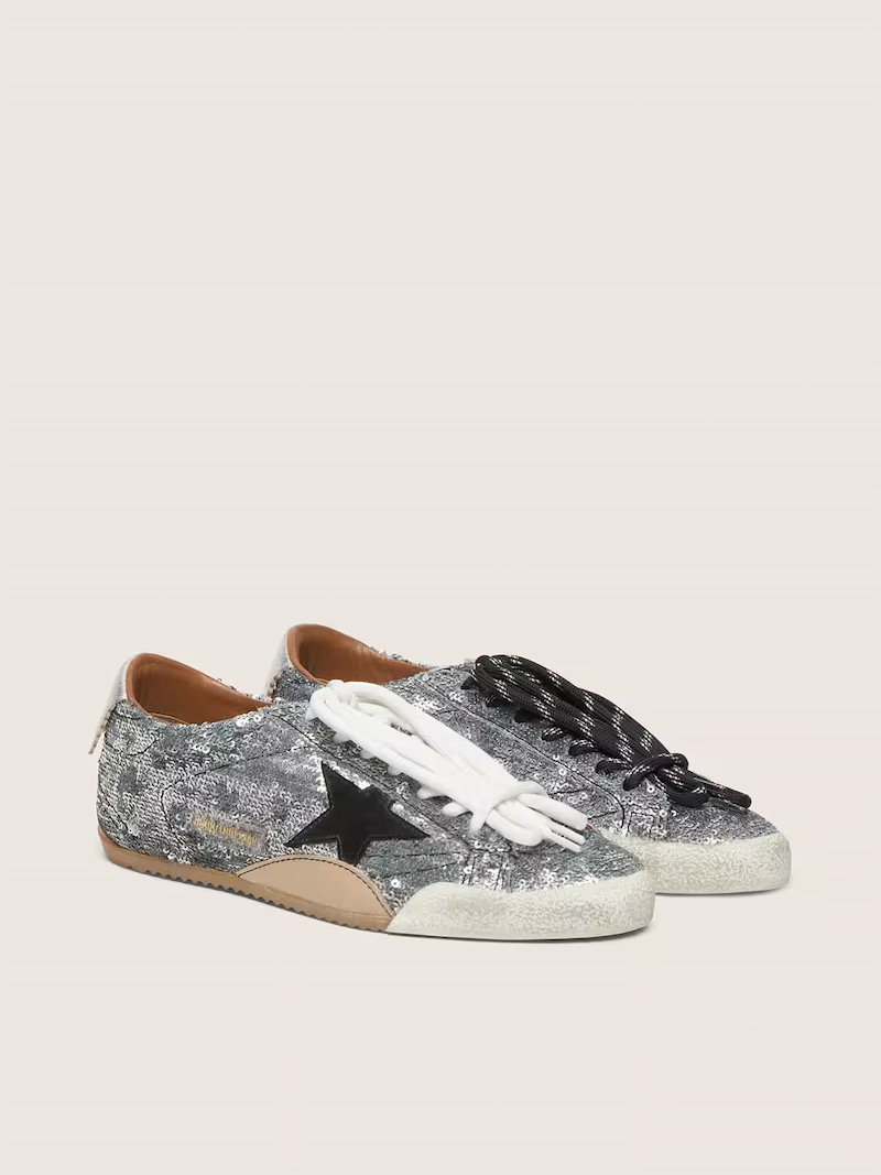 Dónde comprar: https://www.goldengoose.com/us/en/women-s-true-star-in-silver-sequins-with-black-star-and-silver-leather-heel-tab-cod-8050235992955.html