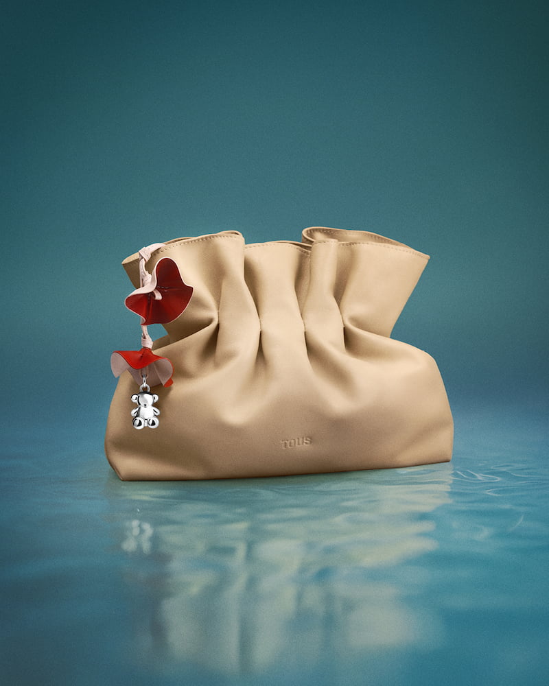 La propuesta se completa con un bolso en tono beige, inspirado en la arena del mar, con un charm formado por el icónico Oso de TOUS.