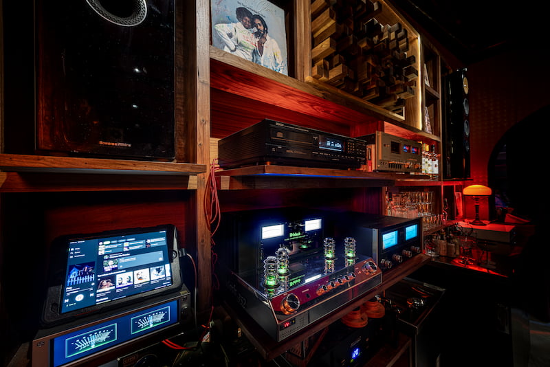 El diseño sonoro, a cargo del artista Fabián Wilkins, se basa en equipos audiófilos de válvulas y formatos múltiples —vinilo, cassette, CD y digital— que ofrecen un sonido cálido, profundo y libre de fatiga auditiva.